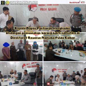 Pontianak, 3 Juni 2024 – Kepala Balai Pemasyarakatan (Bapas) Kelas II Pontianak, Akhmad Heru Setiawan, menghadiri undangan dari Direktorat Narkoba Polda Kalimantan Barat Pemusnahan Barang Bukti Narkotika dan terkait kasus yang melibatkan anak di bawah umur dalam tindak pidana narkotika.